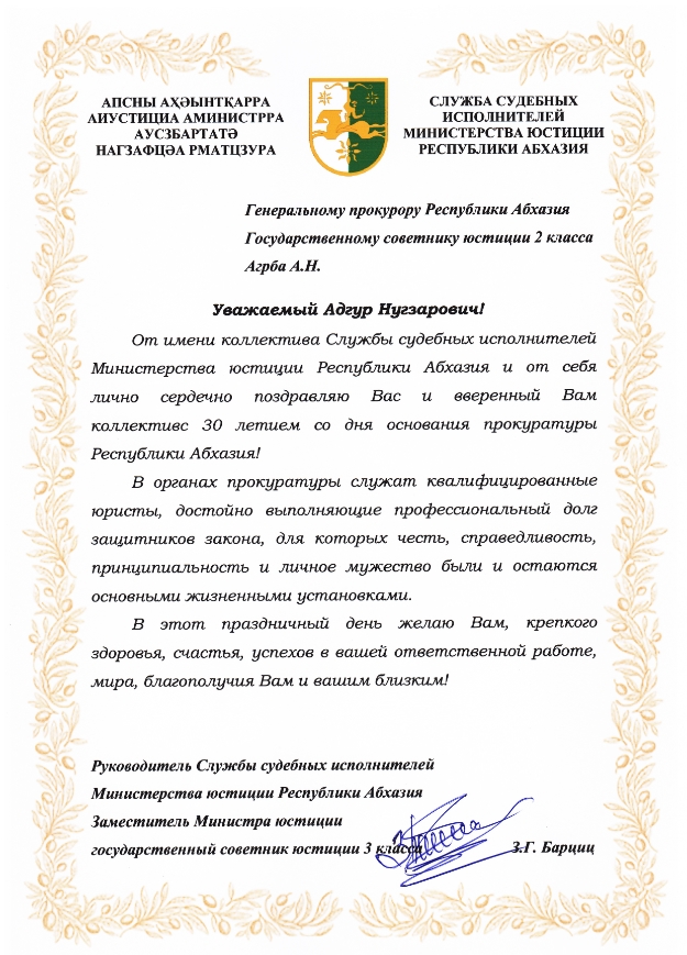 В соответствии с Законом Республики Абхазия «О прокуратуре Республики Абхазия» в органах прокуратуры разрешаются заявления, жалобы и иные обращения, содержащие сведения о нарушении законов.