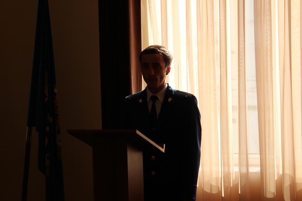 По завершению чтения присяги и.о. Генерального прокурора РА Аршба Г.В. поздравил молодого специалиста, пожелал ему успехов в работе, карьерного роста и вручил памятный подарок.